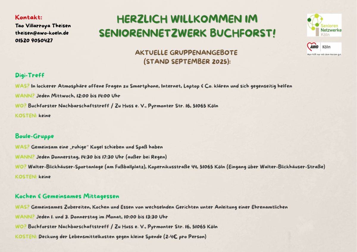 Was ist los im SeniorenNetzwerk Buchforst? Alle Angebote in der Übersicht: