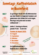 Der Sonntags-Kaffeeklatsch im Stadtteilzentrum geht weiter! Weitere Infos und Termine im Anhang:
