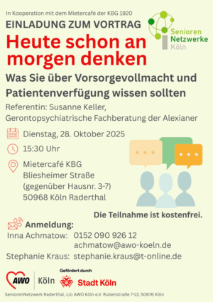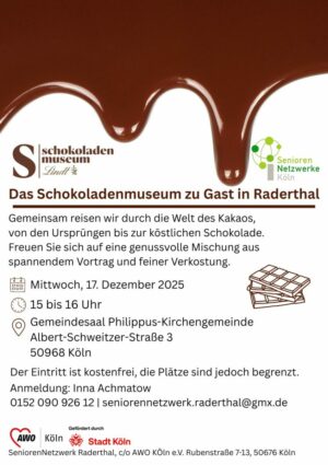 Seit Sommer 2019 wird in Raderthal ein SeniorenNetzwerk aufgebaut – eine gute Gelegenheit für Interessierte, Kontakte zu knüpfen, Gleichgesinnte im Stadtteil kennen zu lernen und gemeinsam Ideen und Projekte ins Rollen zu bringen und sich ehrenamtlich zu engagieren. Senior*innen und Vertreter*innen von Institutionen und Geschäften sind herzlich eingeladen, die Netzwerkidee kennen zu lernen, ihre Erfahrungen und Kenntnisse beizusteuern, um mit vereinten Kräften Raderthal seniorenfreundlicher und noch lebenswerter zu gestalten.